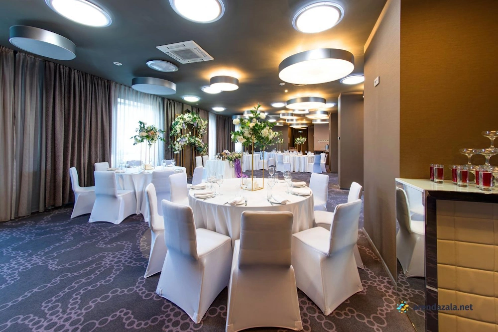 Банкет-холл расположен в удобной локации недалеко от центра города, в шаговой доступности от метро и торговых центров. Это уютное и чистое заведение, где гостям предлагают отличный завтрак и ужин в собственном ресторане. Особенной изюминкой считается панорамный зал с балконом на девятом этаже, правда, балкон нельзя посещать зимой. Заведение имеет хорошую конференц-зону для проведения различных мероприятий, а также современные и стильные номера повышенного класса обслуживания. На территории предусмотрена парковка для гостей.